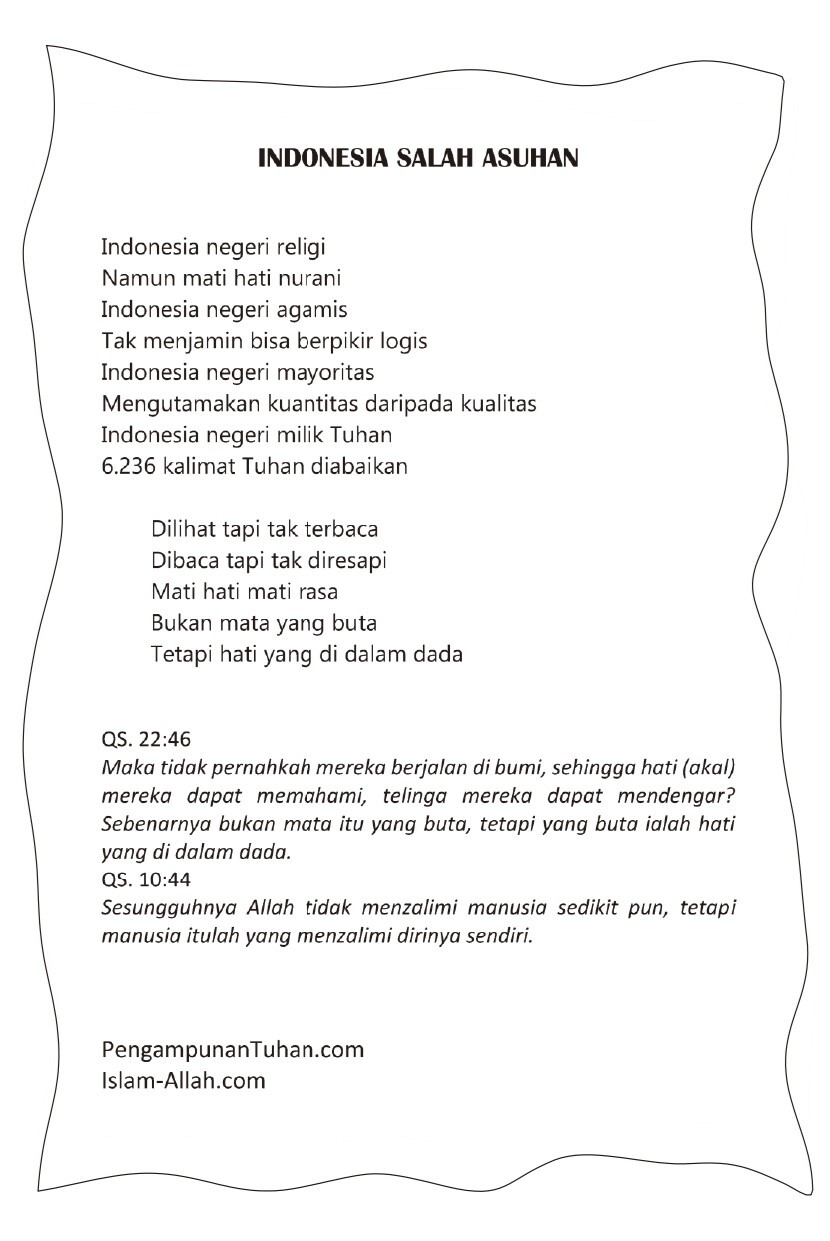 Sesungguhnya Allah tidak menzalimi manusia sedikit pun, tetapi manusia itulah yang menzalimi dirinya sendiri.